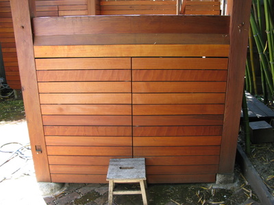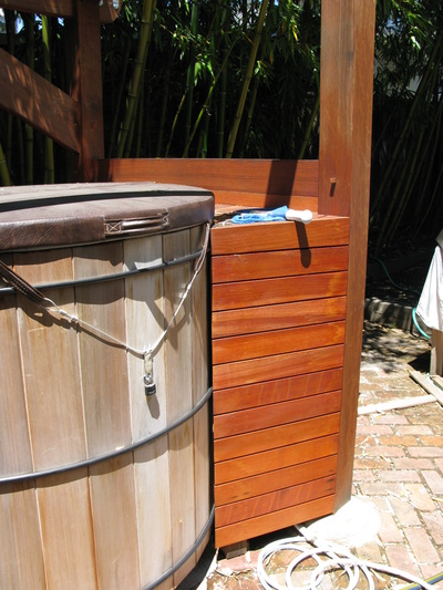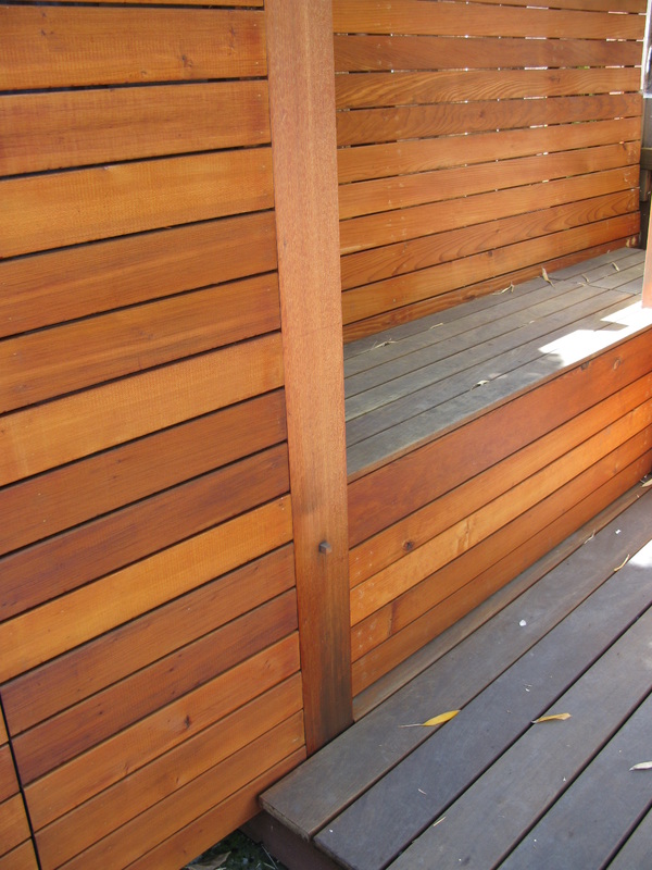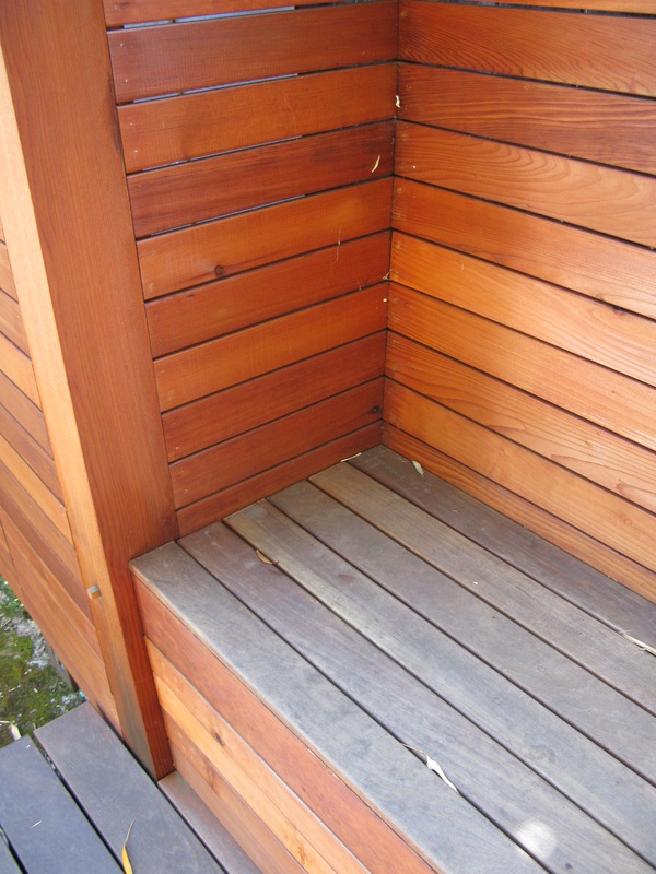 Deck, seating, and hot tub enclosure. Redwood and ipe.
