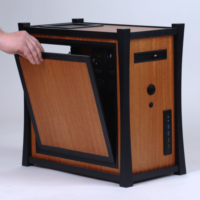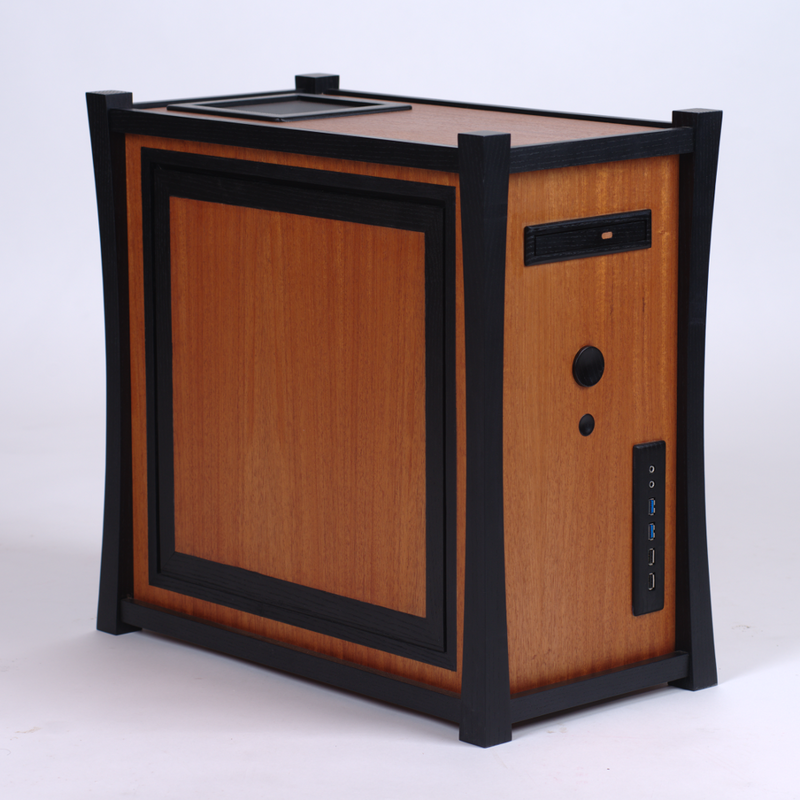 Baltic birch plywood, mahogany, and ebonized ash. Oil and conversion varnish finish.